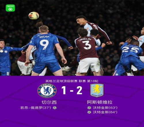 北京時(shí)間12月28日英格蘭足球頂級(jí)聯(lián)賽 聯(lián)賽 第18輪,切爾西主場(chǎng)對(duì)陣阿斯頓維拉。切爾西若昂-佩德羅破門(mén)。阿斯頓維拉沃特金斯梅開(kāi)二度。最終比分切爾西 1-2 阿斯頓維拉。