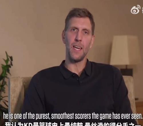 諾維茨基接受采訪時表示:“雖然被杜蘭特超越我不太開心,開玩笑啦!我認為杜蘭特是我見過的籃球史上最純粹的得分手之一,最絲滑的得分手。他就是個7英尺的大塊頭,雖然他不承認,如此身高卻擁有2號位的細膩技術(shù)。頂級的終結(jié),濕滑的持球跳投,還有各種強投能力。講道理,一對一根本沒人防得住他,他總是能制造出絕佳的出手機會。他的技術(shù)就是這么細膩,身高臂長,完美的出手節(jié)奏。見證他的職業(yè)生涯簡直就是一種享受。還是那句話,他是籃球史上最純粹的得分機器。恭喜KD,繼續(xù)沖吧!名次再往前挪幾位吧,繼續(xù)加油!”