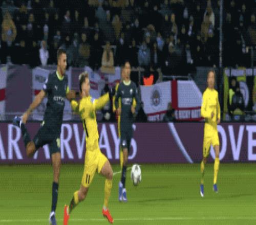 第24分鐘,阿萊恩的停球太過拖沓,曼城又被搶斷,霍格包抄一蹴而就。